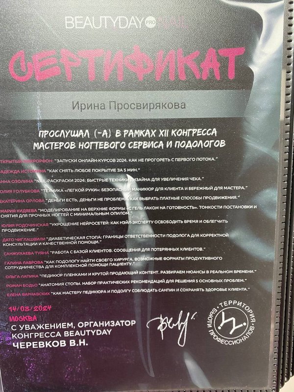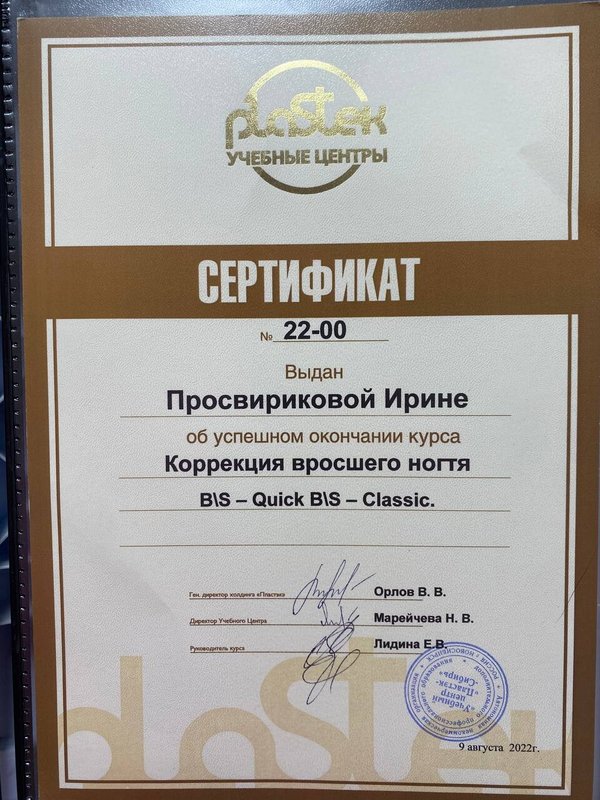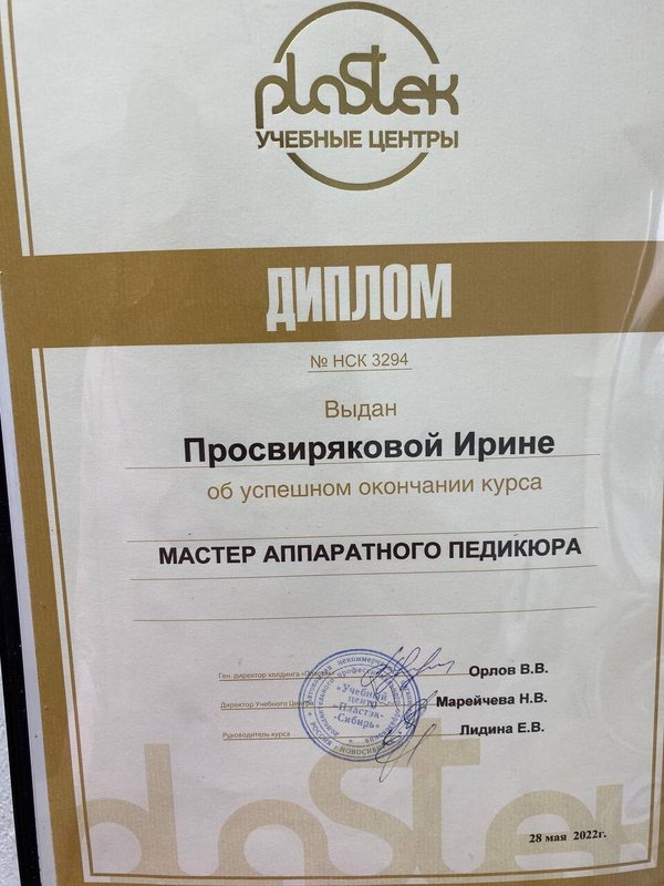Мне у подолога Ирины Анатольевны вполне нравится, особенно радует то, как она делает свою работу. Качество работы мне нравится, меня всё устраивает, особенно сейчас, когда у меня проблемные ногти и мы делаем коррекционную систему. Думаю записаться к ней на следующей неделе.